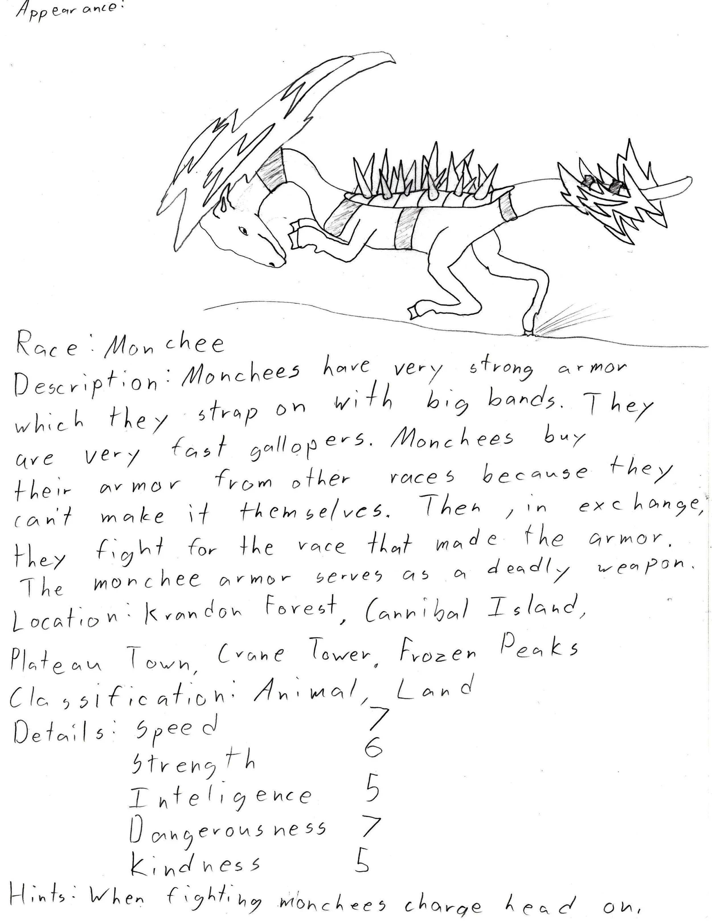 The kids absolutely loved it—to the point that they each started making their own creature pages with a similar style of description and stats. I have to say, I was pretty surprised by the creativity and inspiration that led them to take a format and copy it so well, while also adding their own personal flare.
